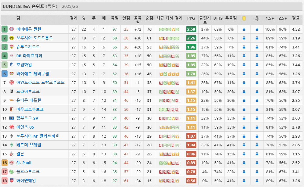 2025-26 시즌 분데스리가 통계에 따르면 전술적 완성도가 정점에 달하며, 기록 면에서도 유례없는 역동성을 보여주고 있습니다.